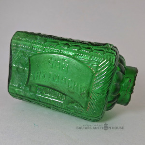 Šī antīkā stikla pudele ir kolekcionējama tējas krūzīte (tējas trauks), kas ražota pirms revolūcijas. Nosaukums: "Kjahtas tējas" krūzīte. Vēsture: Nosaukums cēlies no Kjahtas apmetnes uz robežas ar Ķīnu, caur kuru notika galvenā tējas tirdzniecība ar Krievijas impēriju. Materiāls: Zaļš stikls ar reljefa rakstu.