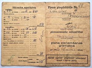 Šis dokuments ir antīka Latvijas piena piegādes čeku grāmata, kas datēta ar 20. gs. 20. vai 30. gadiem. Dokumenta veids: piena pieņemšanas grāmata, ko piegādātāji izmanto, lai reģistrētu piegādes piena pārstrādei. Saturs: Ietver maksājumus par piegādāto pienu, krējumu, sviestu un sieru, kā arī atskaitījumus, piemēram, kooperatīva biedriem.