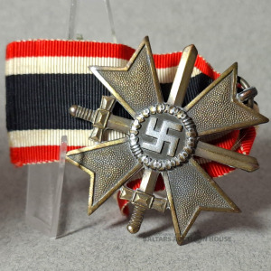 II šķiras Kara Nopelnu Krusts ar zobeniem (Kriegsverdienstkreuz mit Schwertern 2. Klasse), 1939. gada modelis. Pārklājums krusta centrā (svastika) ir nolobījies; skatīt fotoattēlu!