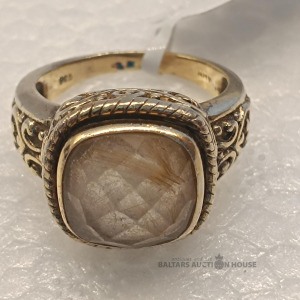 Apzeltīts ar biezu kārtu sudraba 925 gredzens ar rutilētu kvarcu. svars: 8.72gr izmērs:18