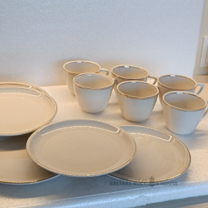 Daina tasītes un kūkas šķīvji palietošanas pazīmes.
