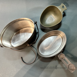 Ekipējums izdzīvošanai, neplīstošs, kompakts trauku komplekts ēst gatavošanai ārpus mājas, katliņš, panna, krūze.