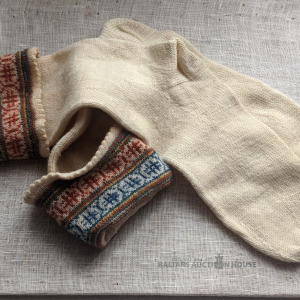 Smalkvilnas adītas tautiskā raksta zeķes, 30-tie gadi.