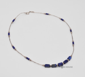Sudraba kaklarota ar Lapis Lazuli akmeņiem. Garums 41 cm. Svars 5.0 grami.