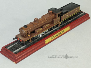 Vintaža vilcienu modeļis, plastmassa uz koka pamatnes, 1:100