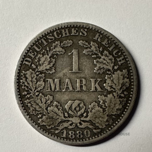 Vācu Reihsmarka, sudrabs 900, 1880. gads, svars 5.39 grami, diametrs 24 mm, labi saglabājusies, kataloga cena ne mazāk kā 20.