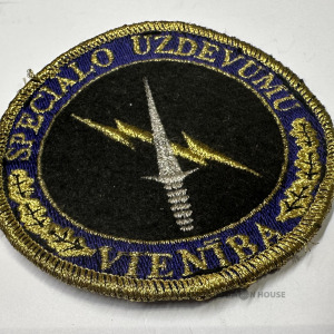 Speciālo uzdevumu vienības uzšuve, NBS, 2000-šie gadi, izšūta ar metāliskiem zelta diegiem, lielums 80 mm, mazlietota.