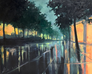 Alise Mediņa. Vakars pilsētā. 2024. gads. Audekls, eļļa. Izmērs 81x 100cm.