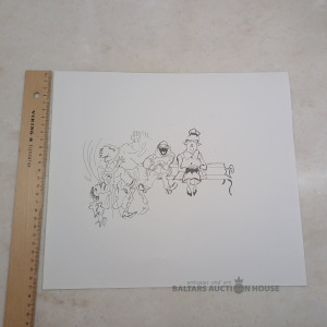 Karikatūra "Parka scēna". Oriģinālzīmējums. Izmērs bildē