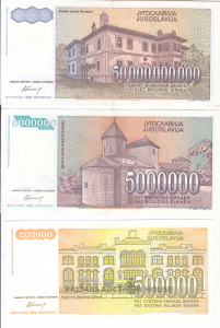 Banknotes, Jugoslavija/Yugoslavia, 500 000, 5 000 000, 50 miljardi 1993 UNC