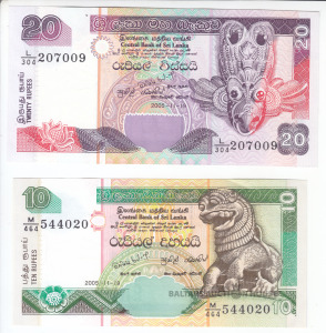 Banknotes, Šrilanka 10, 20 Rupijas 2005, UNC