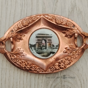 Senlaicīgs dekoratīvais pelnutrauks. Mīsins. Triumfalas arkas attēlojums ar uzrakstu. Originālie caurumi dekoratīvam nolūkam pie sienas. Francija.