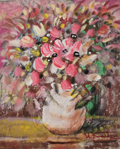 Uldis Krauze (1958). ZIEDI. Kartons, jaukta tehnika. 26x21,5 cm