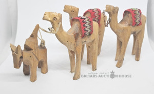 Koka kamieļu karavāna ar vedēju, statuetes. Rokas darbs.