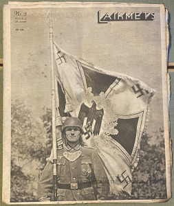 Žurnāls "LAIKMETS' 1943.g. Nr. 5. Visi Laikmeta numuri, kuri šeit tiek piedāvāti, vaitāk vai mazāk ir ar lietošanas pēdām. Informācija ir saglabājusies un žurnāli atspoguļo gan mākslas, gan sporta notikumus. Tajos ir kauju skatu foto un fīrers, Bangerskis u.c.