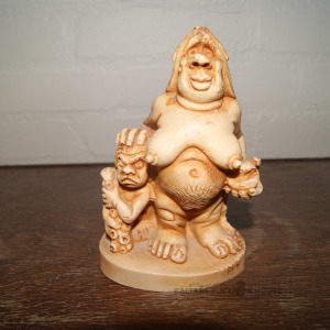 unikāls, neparasta dizaina dekoratīva figūriņa. Izpildīta groteskas/humora stilā, attēlojot aizvēsturisku sievieti ar bērnu. Materiāls: Polistouns (mākslīgais akmens) ar kaula imitācijas apdari.
