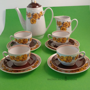 elegantu un mājīgu Rīgas Porcelāna Rūpnīcas (RPR) kafijas servīzi ar klasisku ziedu motīvu.