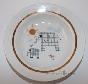 Dziļais šķīvis ar zilonīšu motīvu. Porcelāns, RPR. d=19,5 cm